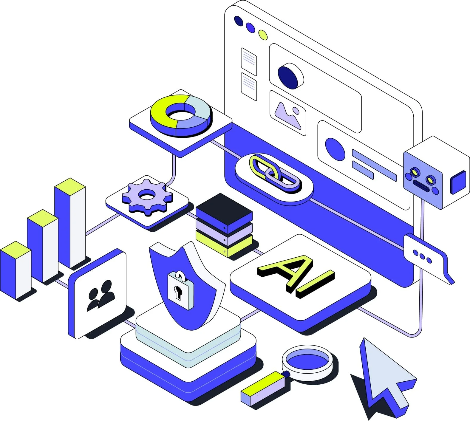 La partie qui m'a le plus engagée dans ce projet : la création d'un univers illustré isométrique sur-mesure. Des illustrations construites avec l'équipe Wikit, en co-construction, pour traduire visuellement leur métier et leurs valeurs. Pas des icônes génériques. Un vocabulaire visuel qui leur appartient.